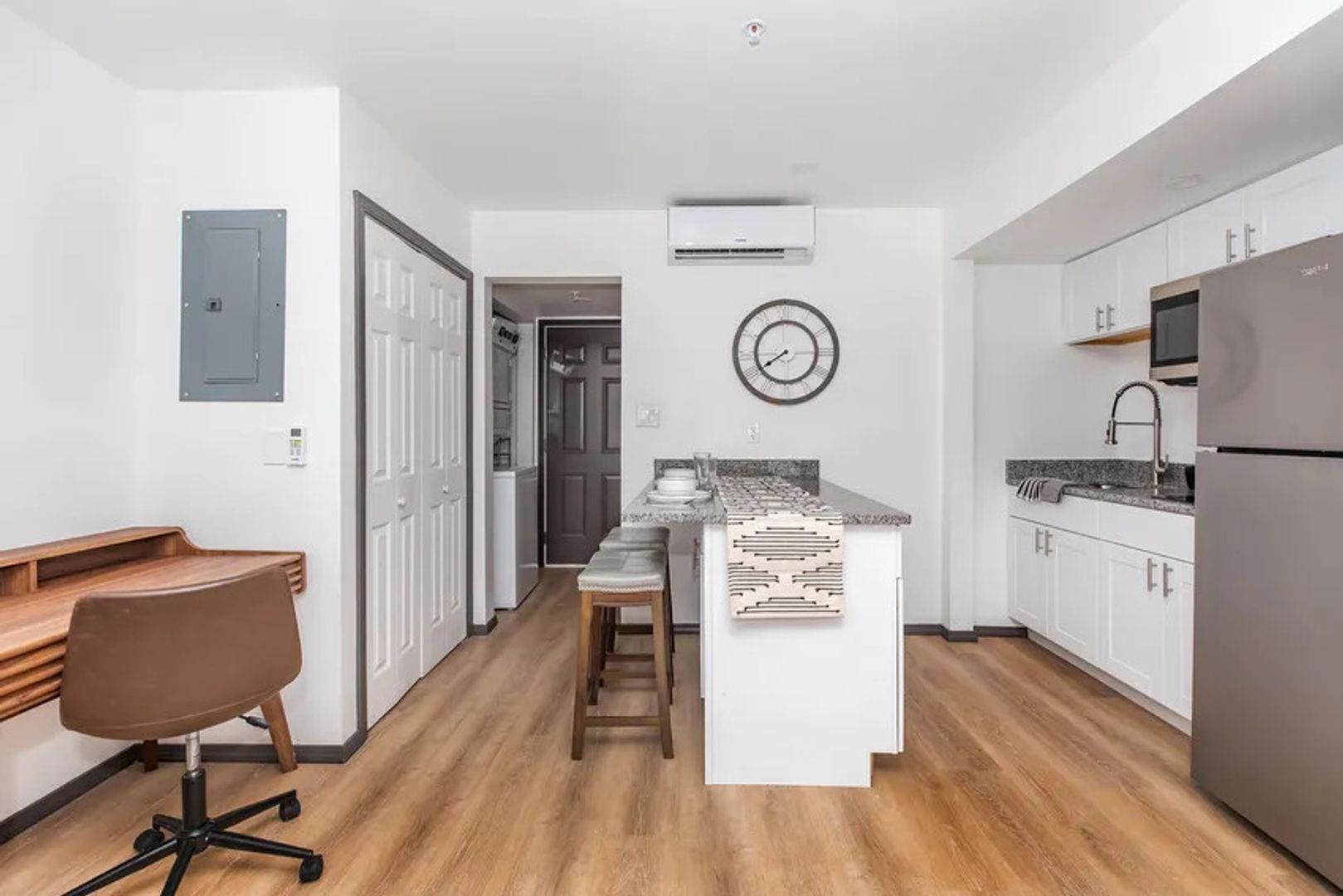 Recently renovated studio apartment in Rio Rancho, NM, featuring a modern layout and new stainless-steel appliances. Located within a gated community, the building offers a range of on-site amenities including a swimming pool, gym, patios, BBQ grills, and a community center. Outdoor and shared spaces provide options for relaxation and recreation, while the updated interior offers contemporary finishes and comfortable living in a convenient location.